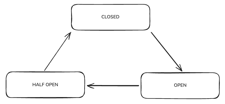 The circuit breaker operates in three distinct states, each serving a specific purpose in the failure detection and recovery process: